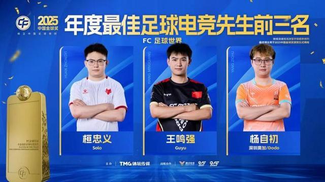 2025年度最佳足球电竞先生(FC足球世界)前三名:桓忠义、王鸣强、杨自初